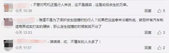也有网友表示:"不管对司机还是行人来说,这不是搞笑,这是劫后余生的万幸""防撞效果很好啊,本身就是要缓冲的""塑料怼钢圈不就这样?""难道不是为了保护发生碰撞时的行人?"。