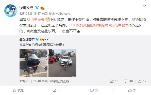 这……真的不是 P图?确定不是摆拍?图片发出之后,不少网友表示难以置信,甚至有人 @深圳交警表示抗议:"图是 p的,官微也发这些东西。一点也不严谨"。深圳交警看后只能亮出以上视频,"以示清白"!