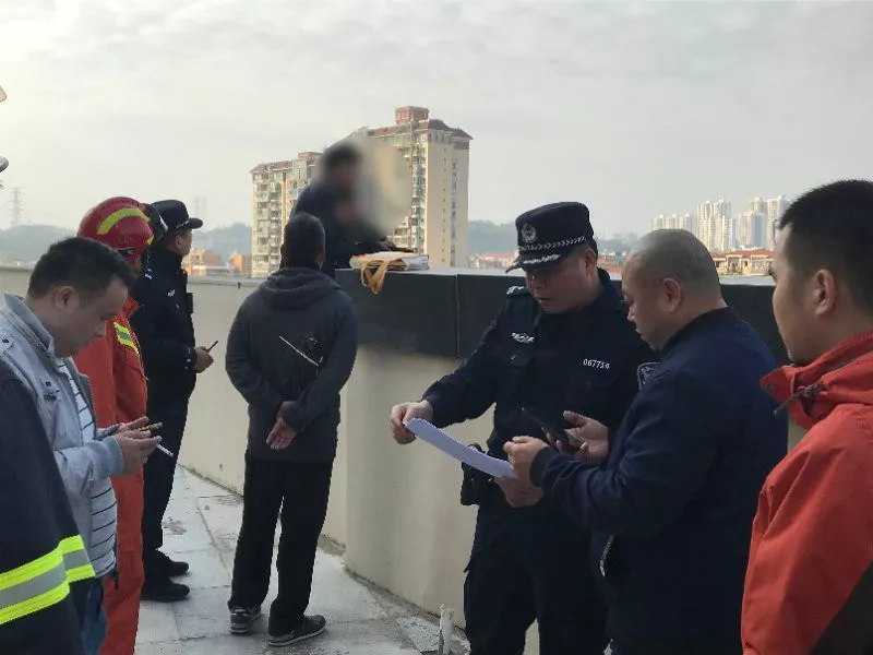 随后,公安、消防等多部门很快赶到现场。大家兵分几路,一路是消防救援人员,立即在一楼铺设了救援气垫,另一路是民警,对男子进行现场劝说。