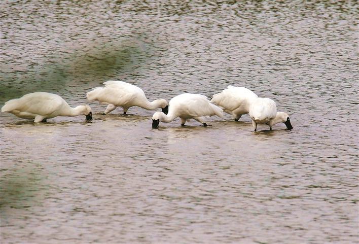 2号鱼塘里的黑脸琵鹭群。