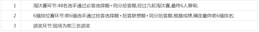 你熟悉改革开放的相关知识吗? 你了解深圳这个改革开放窗口城市吗? 你关注深圳特区的发展历程吗? 你知道深圳各大地标吗? …… 只要你有兴趣 欢迎报名参加我们将选取 活动现场还有惊喜大礼等你哦大家千万别错过哟! 第一名将获得华为P20手机一部 图片来源:华为官方旗舰店 前6强选手将获得丰厚奖品哦! 竞赛流程 竞赛规则 淘汰赛奖励和规则 【奖励】本次知识竞赛共有七轮淘汰赛,将从48名参赛选手中,选出6位选手晋级排位赛。48名参选选手均将获得手绘深圳景色明信片,6强选手都将获得奖品。 【规则】淘汰赛中,所有选手都两两PK答题,号码牌数字由选手自己盲选,号码牌接近的两人自动互为PK对手(1号牌 PK2号牌、3号牌 PK4号牌……依次对应PK)。题目皆为选择题,答案有A、B、C三个,选手要从中选出正确答案。谁答对的多谁赢,同分再抢答一题定胜负,输的一方自动淘汰。 排位赛规则 【总规则】所有选手都将分到一个抢答器,初始得分都为100分,比赛过程中选手们进行抢答,答对得20分,答错扣10分,提前抢答扣10分,每题答题时间10秒,答题超时扣10分。 排位赛共有20道抢答题,其中10题为选择题,10题为联想题: 【选择题规则】选择题答案有A、B、C三个,选手要从中选出正确答案,参赛选手必须在主持人喊出“开始”后,才可抢答,提前抢答扣分; 【联想题规则】联想题的每一道题的答案都是一个专有名词,每道题目主持人会用较慢速描述该名词开始,选手从主持人的描述中获取线索,猜出答案,选手可随时抢答。答对一题得20分,答错扣10分。 了解清楚比赛流程和规则之后, 是不是想赶紧报名呢? 那么,具体如何参与呢? 报名方式 1、扫描下方二维码进入原文留言,回复“报名+姓名+电话”; 2、回复截止时间至2019年1月3日。如若报名成功,将会收到我们的回复通知; 3、本次活动免费报名,活动解释权归深圳发布厅所有。 期待你的参与! 快快报名吧! 内容来源:深圳发布 如需转载,请注明以上内容