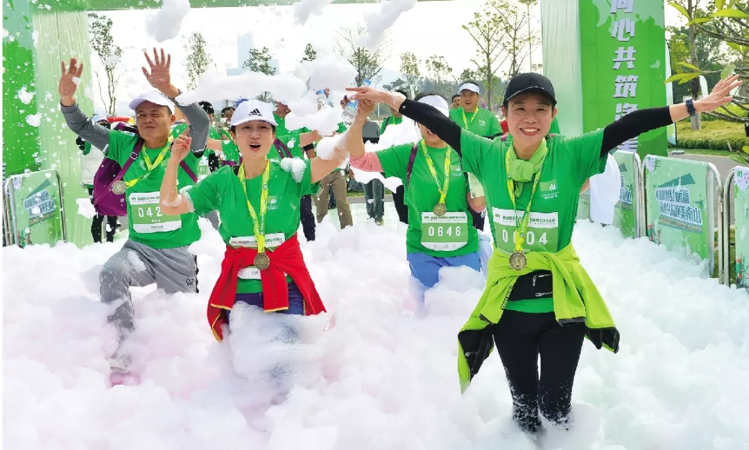 开场乐队分分钟就点燃了现场的火爆氛围,嗨翻全场。主题歌曲《南方有座山》更是将现场的氛围推向高潮,感动了参与生态欢乐跑的全体跑友,大家跟着一起喝彩,一起跟着节拍舞动。