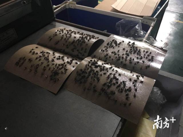 除臭气难闻外,笔者看到靠近垃圾站一边的厂房玻璃上爬着好几只苍蝇,同时,工厂员工还展示了两张粘蝇纸。
