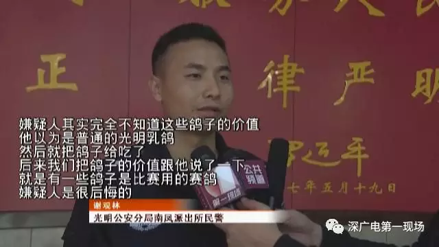 目前,嫌疑人龙某、梁某已被光明警方依法刑事拘留,对于程先生信鸽的品种、价值,警方也正联系深圳市信鸽协会及相关部门核实确认,案件正在进一步侦办中。
