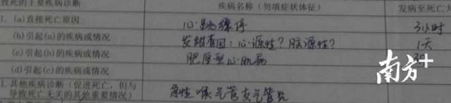 “没有任何抢救措施!没有给孩子上药、没有去重症监护室抢救。”孙小姐回想起当时的经历,既心痛又气愤。后来,护士来给孩子挂盐水针时,发现孩子非常虚弱,赶紧叫来医生。孙小姐说,报告上写着死亡时间是12点10分,但其实在9点42分,孩子就已经走了,但自己始终不愿意放弃抢救。“孩子蹦蹦跳跳过来的,只是一天一夜的时间,就这样没了。”从孙小姐提供的一份死亡证明中显示,孩子因肥厚型心肌病引发的心跳骤停,而这次患上的急性喉气管支气管炎被列为促进死亡的原因。孙小姐说,在去年8月,孩子确实曾被诊断出肥厚型心肌病,但10月、12月分别在港大深圳医院、市儿童医院检查,当时医生表示只有非常轻微的症状。