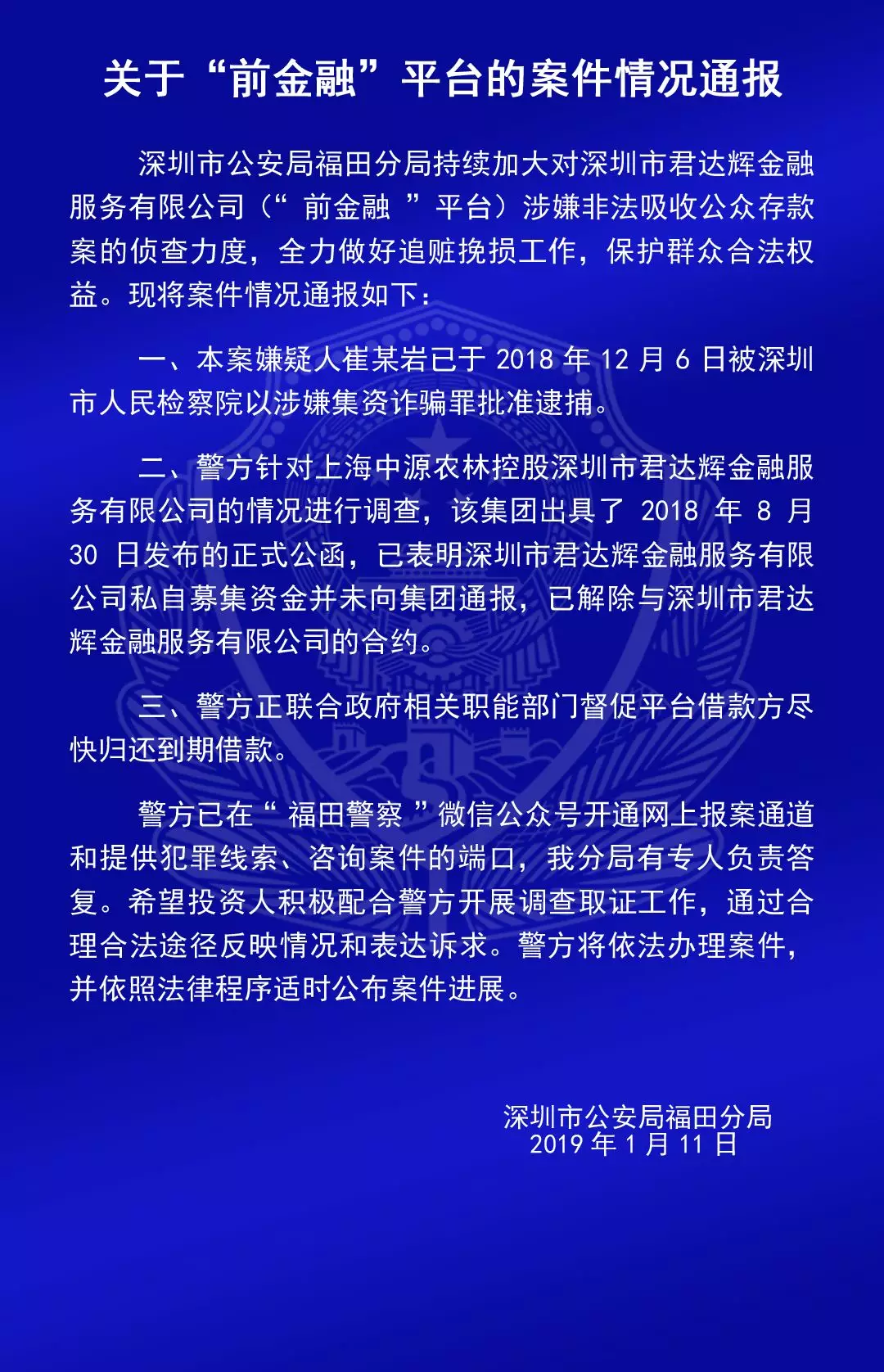 福田公安通报六家平台涉嫌非法吸收公众存款案的情况