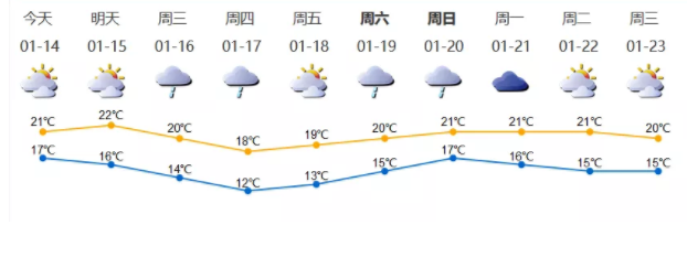 我市今天阴天到多云,局部有零星小雨,早晚能见度较低;气温17-21℃;偏东风2级;相对湿度70%-90%。