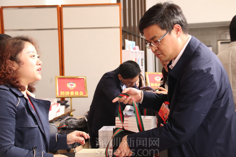 政协委员张小梨领取会议资料