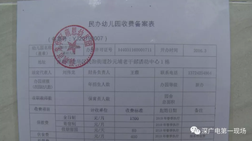 对此,龙华教育主管部门回复:2016年3月同意萌恩幼儿园设立;2018年7月该园取得民办非企业单位登记证书的办学资质,2018年12月向教育局申请了收费备案;2019年1月批复同意他们的收费标准。