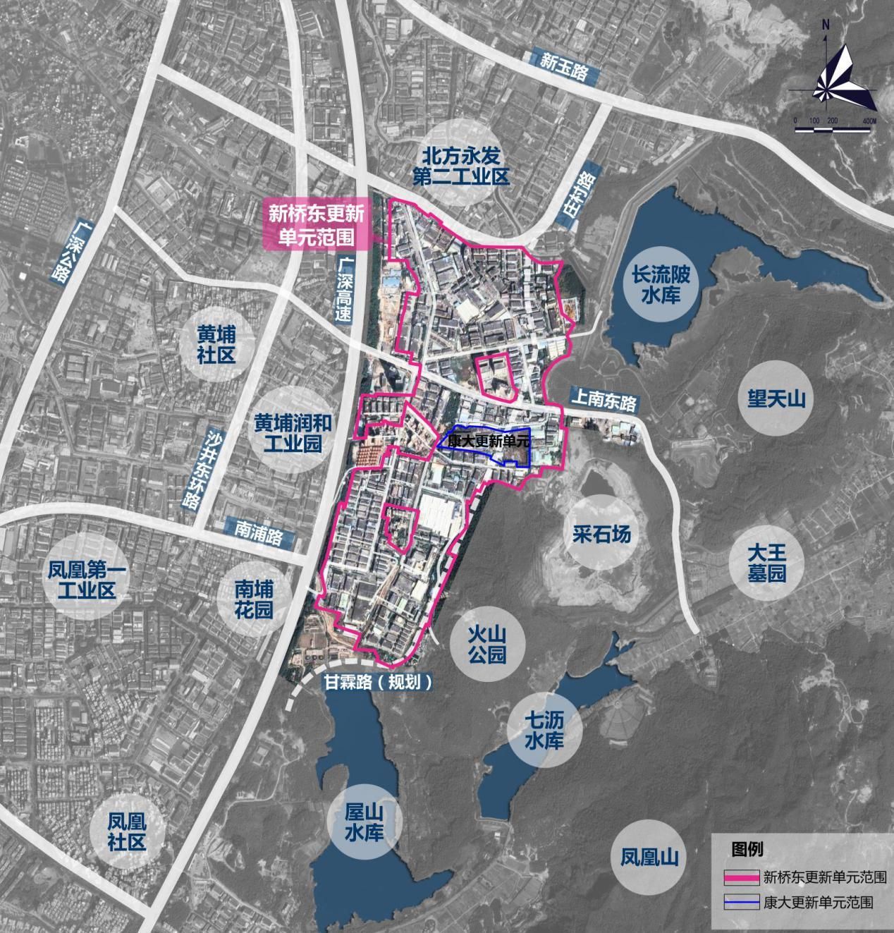 记者了解到,新桥东片区重点更新项目也是全市首个“平方公里”级更新单元。项目详细城市设计范围为北至庄村路,西至广深高速,南部和东部以甘霖路和现状建设边界围合区域,由新桥东片区重点城市更新单元范围和康大工业基地城市更新单元范围构成,面积约1.6平方公里,其中拆除用地面积为1.27平方公里。