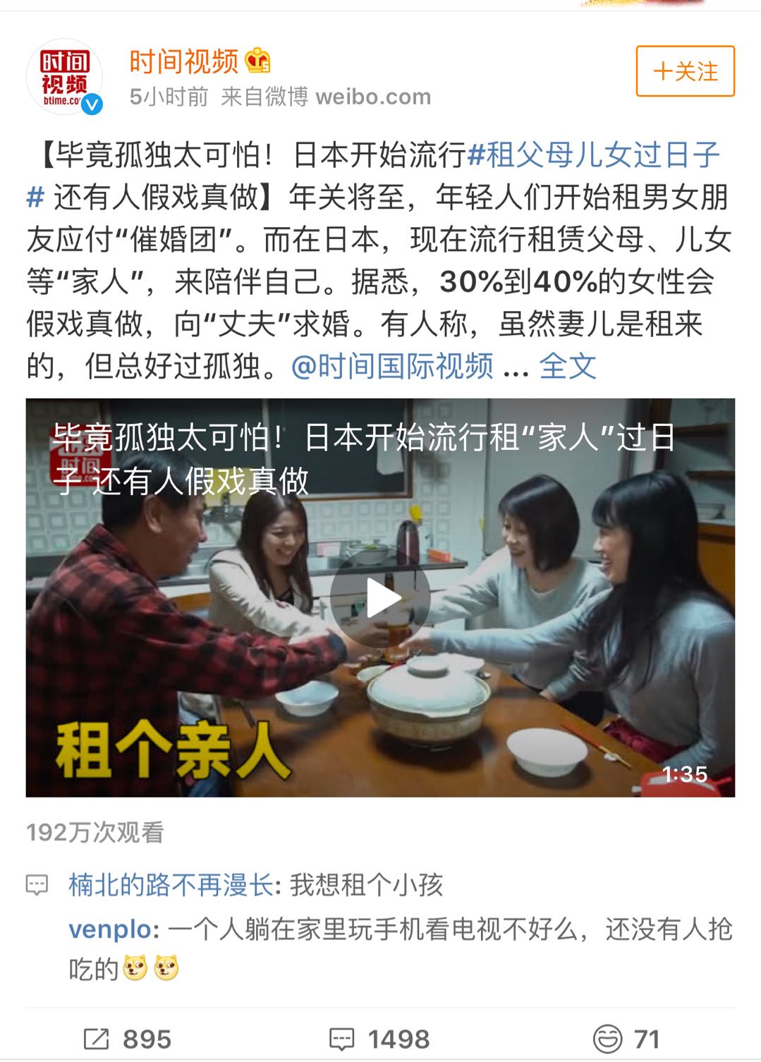 最近,日本流行租父母儿女过日子了