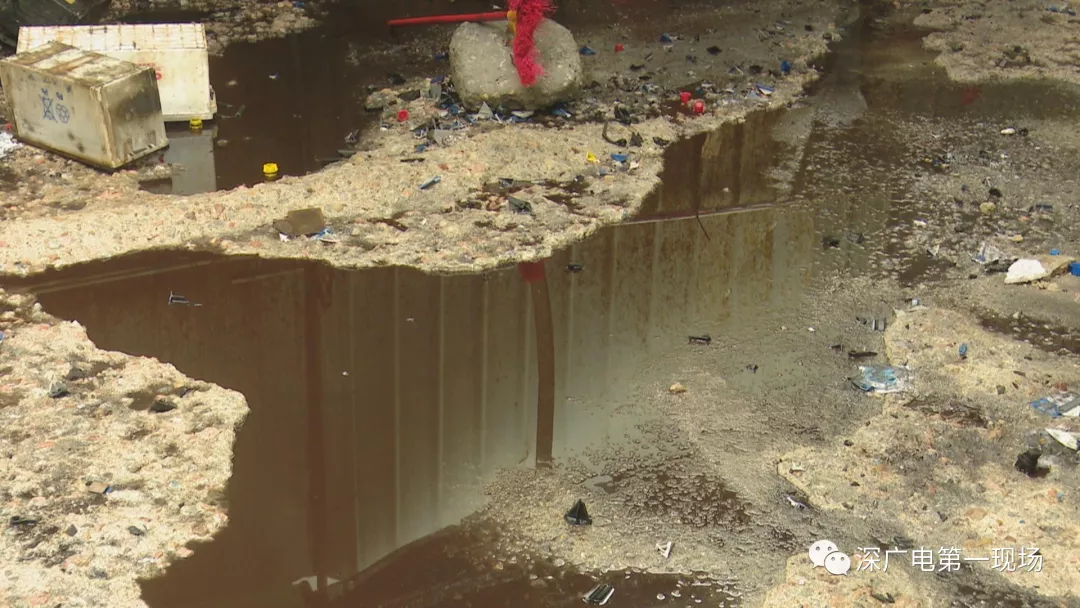 现场地表和围挡的金属,都已被强腐蚀性的电池废液严重腐蚀。经现场初步勘查得知,这里的电池废液,通过地表流入了场内的化粪池。执法人员表示,废液很有可能已影响到市政污水管网。