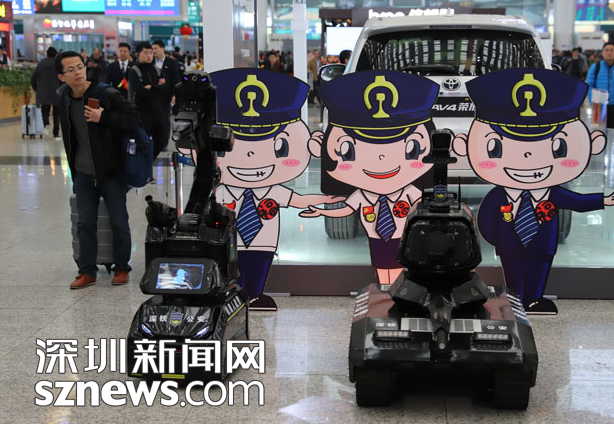 机器人战警亮相深圳北站可发射大网制服嫌疑人