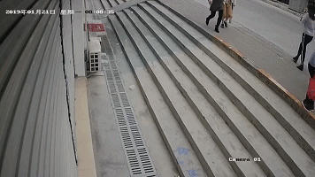 事故现场附近店铺监控显示,当时几名女子正三五成群,沿着力嘉路人行道由南往北走着,几人在说笑间突然惊恐起来,接着一辆黑色的车就撞了上来,车顶着数人冲上人行道,最终停在阶梯下方。