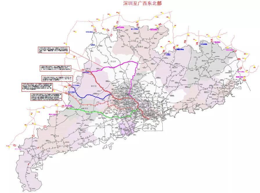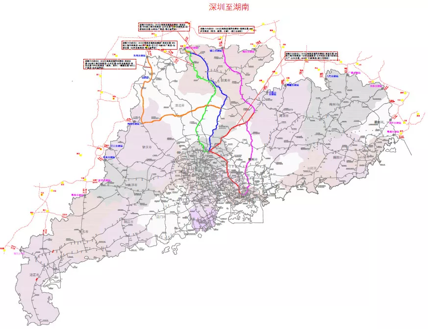 深圳出省线路从深圳出发,通往湖南、广西东北部、江西、福建、海南及广西北部湾方向出行指引: