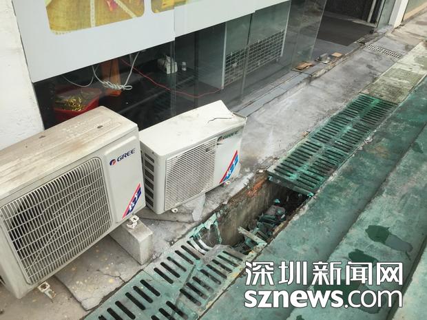 餐饮店老板告诉记者,当时肇事车辆逆行直接冲下8级台阶,巨大的冲击力将店门前的地板撞得粉碎,门口的空调机箱也受损严重。