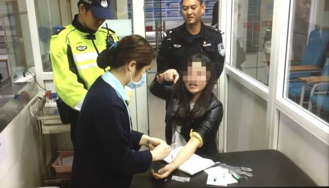 交警:来,酒精测试。最后一次机会,小姐。我现在警告你,再不配合立即去抽血,不要在这里装,一堆人服侍你,如果你想上头条,我配合你。