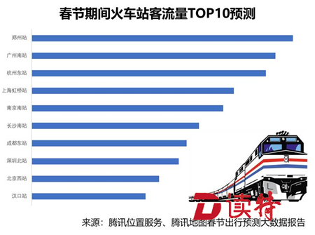 郑州作为中国铁路的中心,当仁不让地成为全国最热门的火车站。而广州南站、杭州东站、上海虹桥站预计分列二、三、四位,基本集中在人流密集的一线城市及区域性中心城市。
