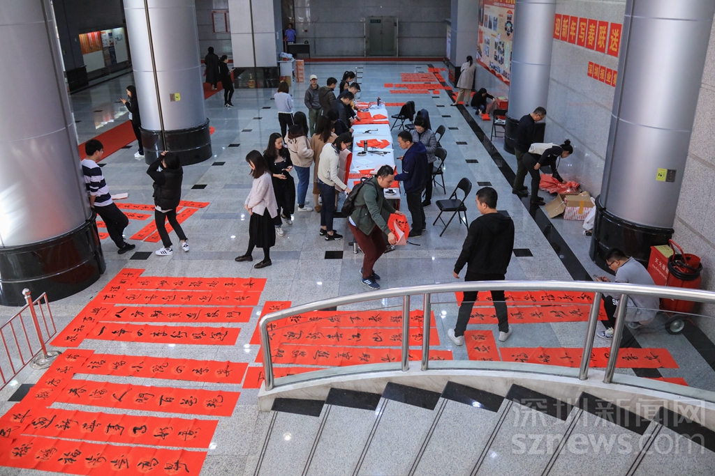 深圳商报大厦一楼变成春联的世界
