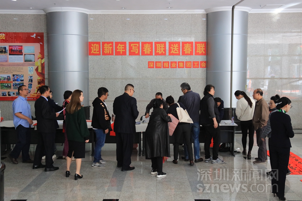 深圳新闻网2019年1月24日讯(记者 张玲实习生 关天宇)写春联送祝福是深圳报业集团每年的例牌环节,今年也不例外。1月24日下午,深圳报业集团工会在商报大厦和深圳特区报业大厦同时开展主题为“迎新年写春联送春联”的活动,平时用钢笔电脑写新闻的记者编辑,今天用传统的笔墨纸砚写下对新一年的祝福和期许。