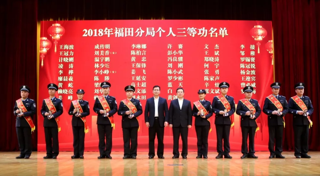 1月24日,福田公安分局举行2018年总结表彰大会,会议对2018年度15个先进集体、54名民警及14名优秀警嫂进行了表彰。