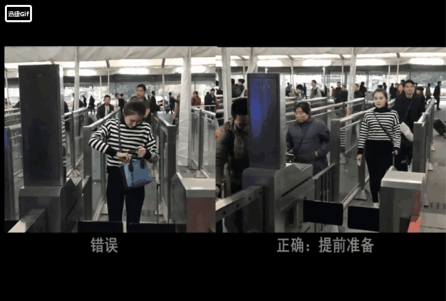 通过自助验证闸机或人工检票进站时,应提前准备好证件、车票,避免耽误个人进站时间、其他旅客时间。
