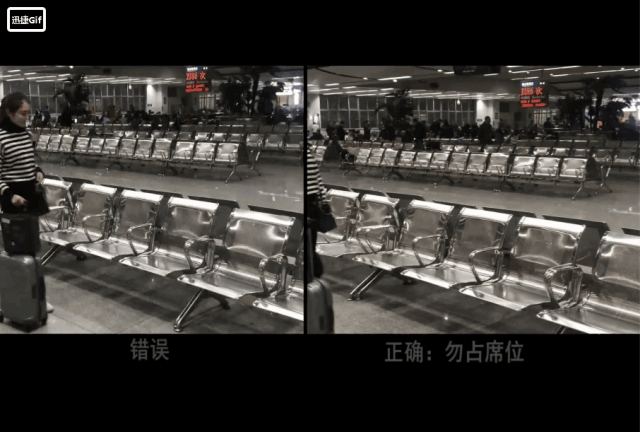 在候车室候车时,勿在座位上卧睡、置放行李占用座位,以免影响其他旅客使用。