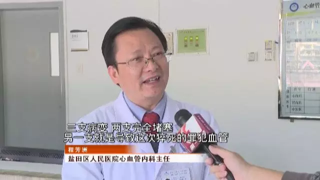 盐田区人民医院心血管内科主任程芳洲告诉记者,通过王先生发病的情况以及心电图的改变,医生们判定他是急性心肌梗死,在做造影后,图像更证实了是非常严重的一种三支病变,其中两支完全堵塞,另一支就是导致这次猝死的罪犯血管。