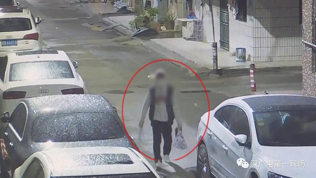 坪山派出所民警也是对几起案件进行并案侦查。通过调取辖区监控,一名形迹可疑的男子走入警方的视线。为了偷几串腊肉,该男子居然还有一点“反侦察”意识,全程戴着口罩和帽子。