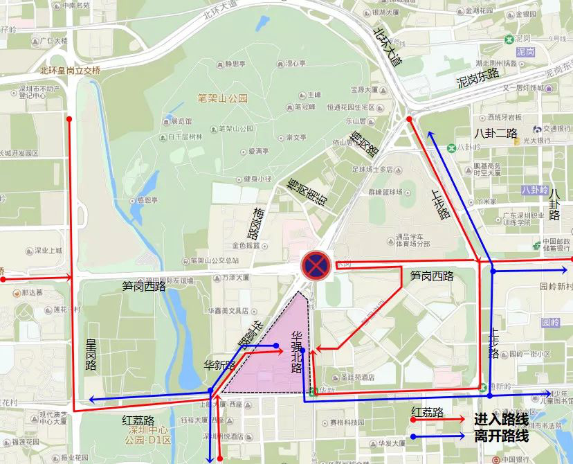 车行交通调整为:红荔路 -上步路 -笋岗西路;上步路 -笋岗西路。