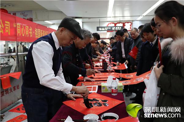 据悉,本次主题活动是深圳火车站已连续开展了4年的“例牌菜”,同时也是广铁集团“同心同书·祖国新春好”送福进万家走进深圳站活动。“同心同书·祖国新春好”系列活动是广铁集团围绕“平安春运、有序春运、温馨春运,让旅客体验更美好”的目标,组织书法名家,在粤湘琼主要铁路站区为旅客写春联、送祝福的系列活动。此前,广铁集团的书法名家已经到广州站为旅客写春联、送祝福,接下来将陆续到其他站区开展活动。