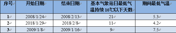 2008~2018年深圳国家基本气象站日最低气温持续10 ℃以下天数前三名