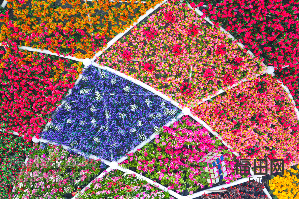 据工作人员介绍,整个花市门楼一共由129800株花卉打造而成,外形以三朵盛开的大花为主造型,花柱为上大下小的喇叭状,顶部相连,底部成品字状分布,花柱以交错的钢结构形成菱形的块状花纹,而每一块菱形图案中又嵌以五彩斑斓的花朵为装饰物,整个门楼的色彩以红色为主色调,混合以粉色,紫色,白色,黄色等多个颜色的混合及点缀,形成丰富多彩的视觉感官,红色的主色调运用,亦很好的呼应了春节喜庆祥和的节日氛围。