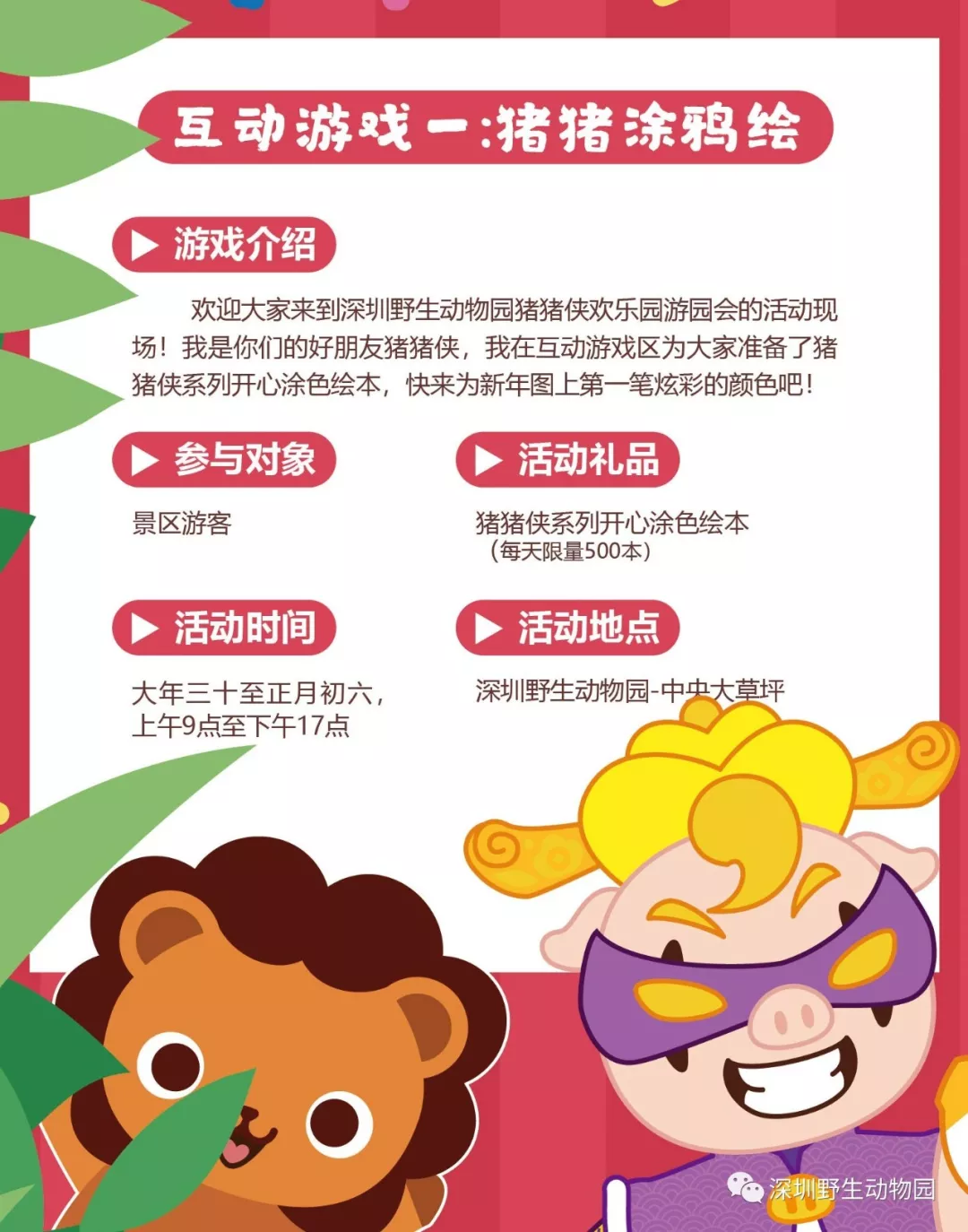 猪年新春新亮点:猪年新生命,新伙伴隆重加入动物王国,点缀出新春最闪耀的色彩;别出心裁猪年猪科普展,带你挖掘猪猪的“前世今生”;美不胜收深圳本土生物多样性科普摄影展,换个角度了解我们身边的动物朋友。