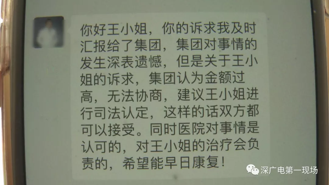 而在郑小姐与整形机构的微信记录显示,整形机构负责人表示“医院对发生的事情是认可的,但具体赔偿多少希望有第三方机构认定”。