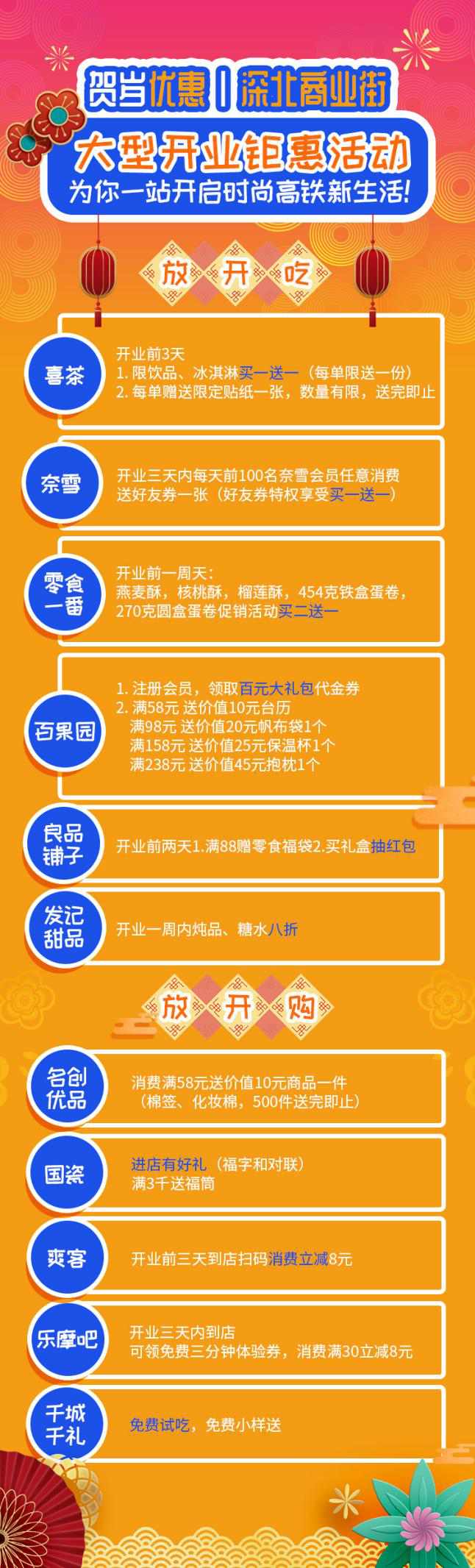 深北商业街各商家开业贺岁优惠活动。