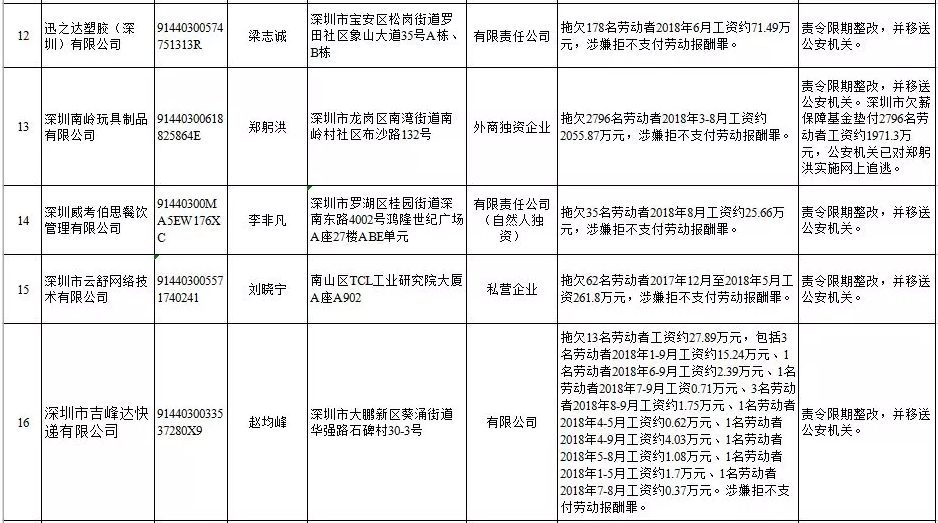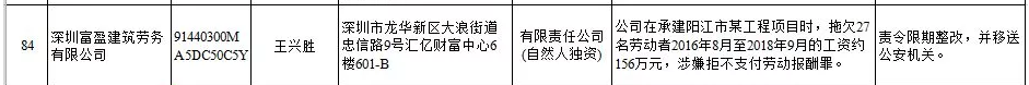 省人社厅近日公布2019年第一批用人单位重大劳动保障违法行为名单