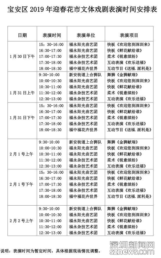 石岩、燕罗、沙井、新桥、西乡街道迎春花市分会场已开市,宝安福中福花市主会场与航城、福永、福海、松岗街道分会场于1月31日开市。