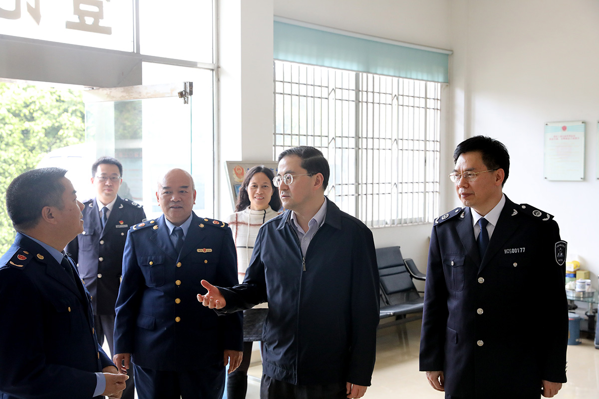 邝兵书记一行还与深汕特别合作区召开了工作协调座谈会,就深汕合作区分局筹备工作进一步交流。深圳市政府副秘书长、深汕特别合作区党工委书记产耀东与邝兵书记交流时表示,深圳市市场监管局深汕分局筹备组成立对大开发、大建设、大发展阶段的深汕合作区来说是一场“及时雨”,对深汕合作区进一步深化“放管服”改革,持续优化营商环境;强化监管执法,着力规范市场竞争;加强安全监管,切实保障民生安全具有重大意义。深汕合作区将全力支持配合深圳市市场监管局深汕分局筹备工作,共同探索深圳第“10+1”区市场监管创新模式。邝兵书记对深汕特别合作区对我局筹备深汕合作区分局的重视和支持表示感谢。调研期间,邝兵书记不仅到深汕合作区分局办公场所、注册大厅等工作场所调研,还专门到鹅埠所和鮜门所进行现场指导。