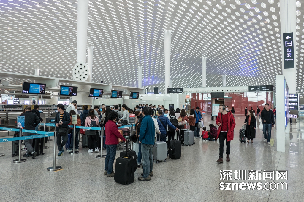 2月3日10:15,宝安机场出发大厅,旅客正在办理行李托运手续(实习 生关天宇摄)