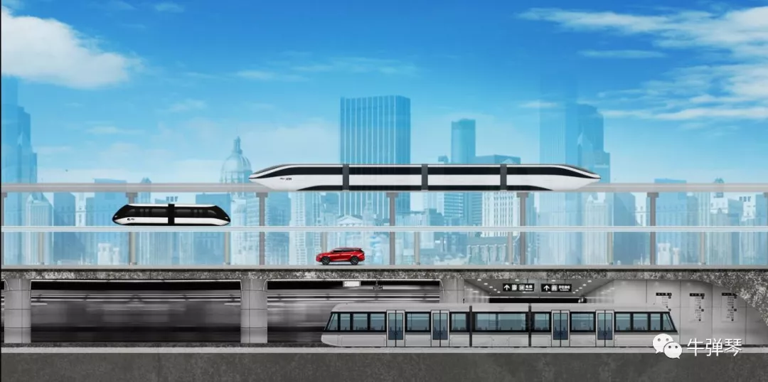 由空中比亚迪云轨云巴、地面汽车和地铁构筑的城市立体交通