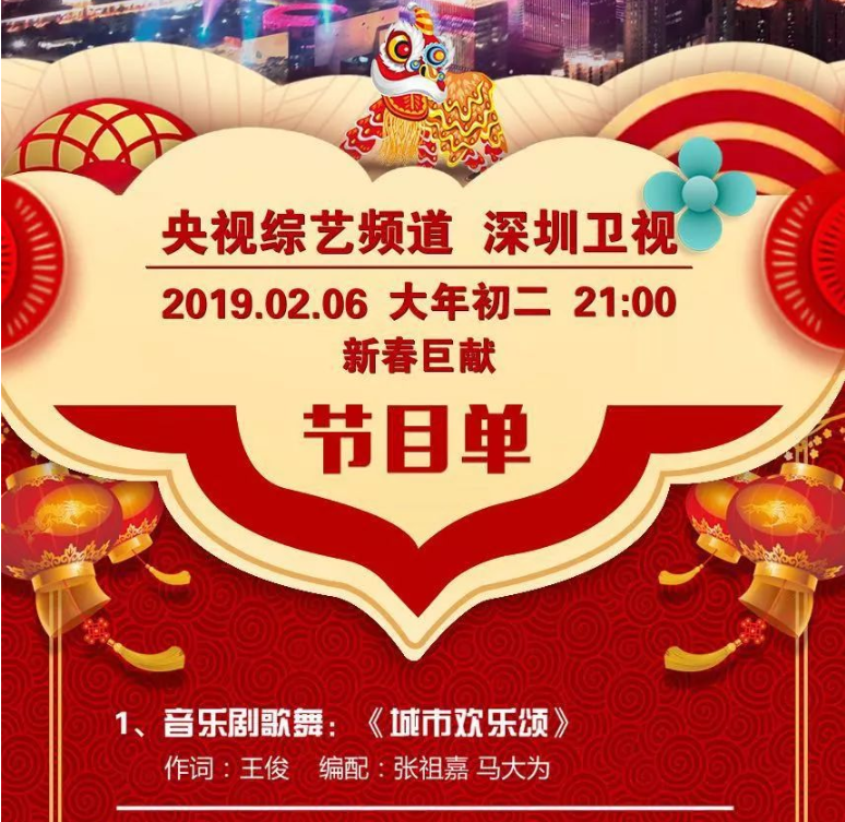 “拥抱春天——2019中央广播电视总台春节联欢晚会深圳分会场节目展播暨深圳春节联欢晚会”(以下简称“深圳春晚”)将于明晚21:00在央视综艺频道和深圳卫视同步播出。