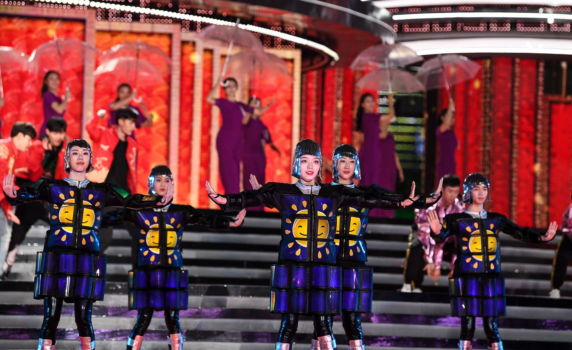 据本次晚会的视觉总监李风介绍,这次用屏量达到了5885个平方,是有史以来最多的。“而且除了量大以外,它整个的结构特别复杂,因为它有200多个立体几何面。整个城市楼宇我们定义成一幅长卷,同时它有个支点,就是平安大厦这个高度,想用平安支点的这个立面来呈现节目单。”