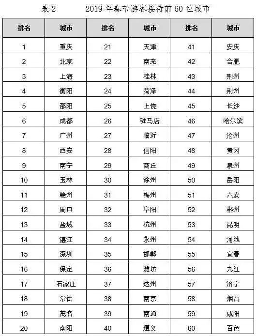 ⑥2019年春节假期全国旅游接待总人数4.15亿人次,实现旅游收入5139亿元。中国旅游研究院11日发布报告,春节期间游客接待前60位城市中,重庆位居第一名。