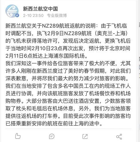 △新西兰航空公司中国区代表表示,此次事件是公司总部在飞机派遣过程中出现失误,误将一架尚未取得中国《外国公共航空运输承运人运行合格审定规则》审定批准的787-9飞机(ZK-NZQ)派遣执行飞往中国的航班。在飞行途中,公司发现了这个失误,并主动采取了返航的决定。