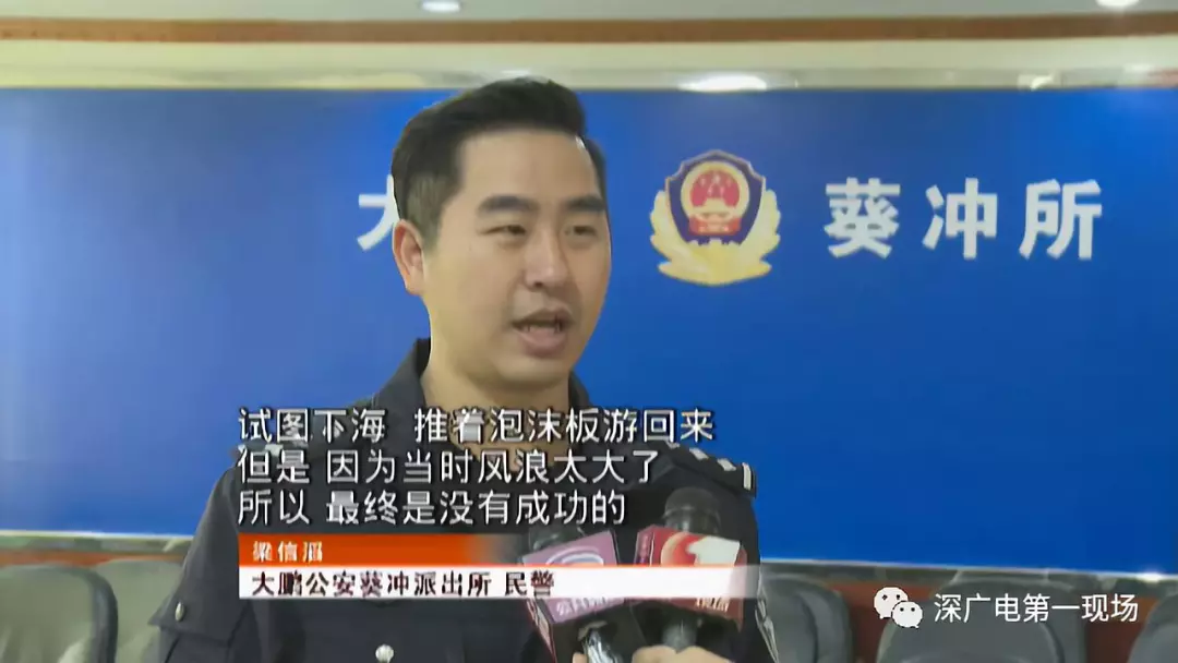 据大鹏公安葵冲派出所民警介绍,当时两个小孩漂得挺远了,其中一个想试图下水把泡沫板推回去,但是失败了。