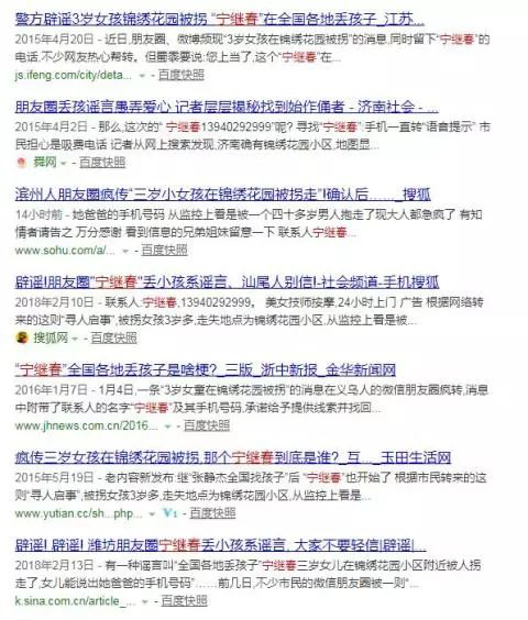 在网上搜索"宁继春",就会发现这其实是一则不折不扣的假消息。从2014年起,全国各地就传出锦绣花园小区"丢孩子"的网络谣言,还有10万元"重谢"的承诺。