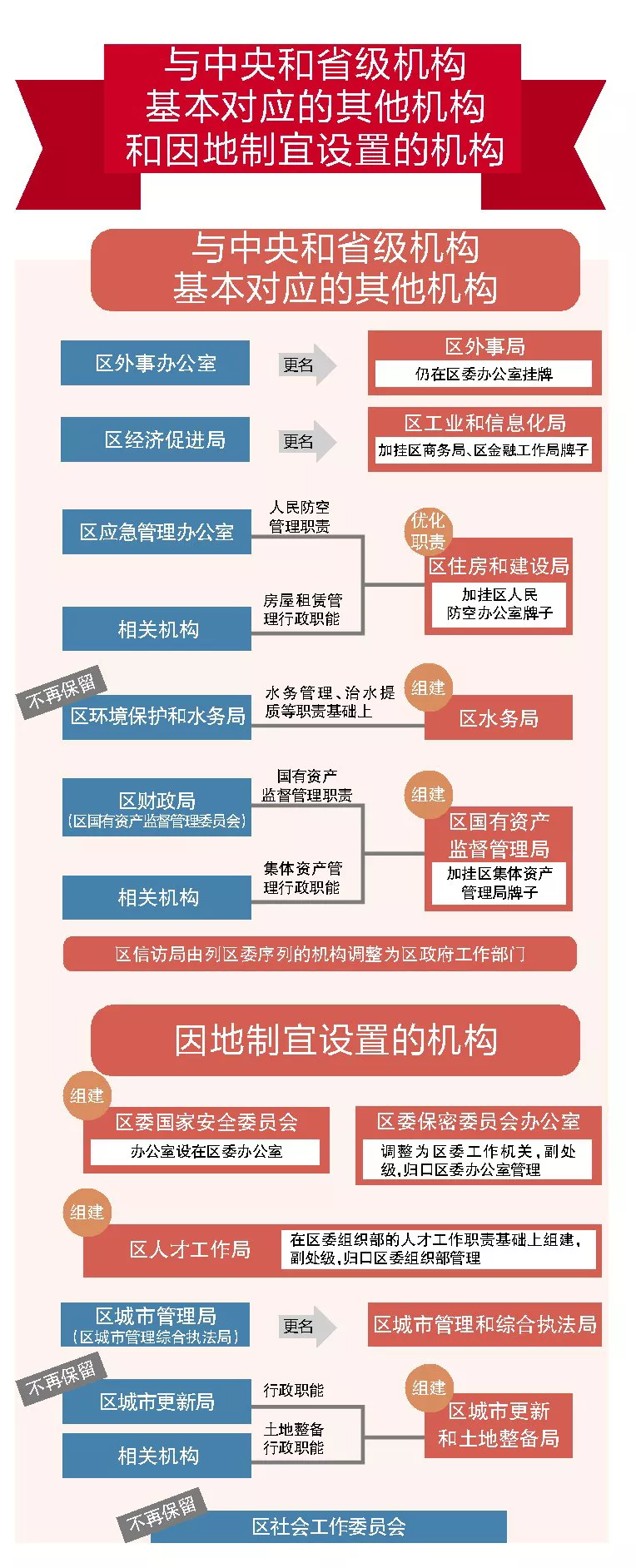四是突出宝安区情和特色。根据宝安的城市发展特点和功能定位,聚焦国有资产、城市更新、土地整备、人才引进等重点领域,因地制宜优化调整机构设置和职能配置,在做好规定动作同时做好自选动作。