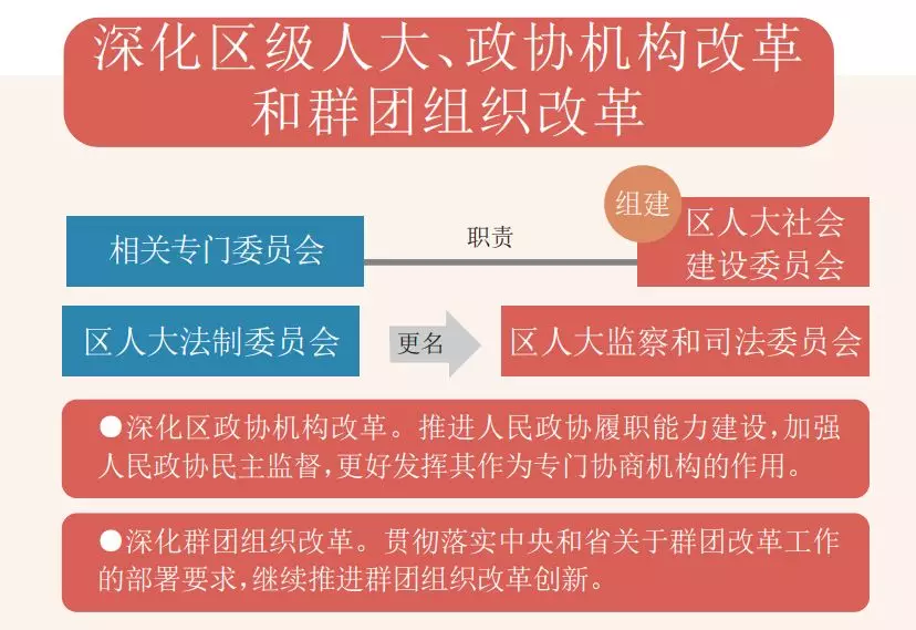 深化党和国家机构改革,是以习近平同志为核心的党中央着眼党和国家事业发展全局作出的一项重大政治决策,是推进国家治理体系和治理能力现代化的一场深刻变革。区级机构改革是深化党和国家机构改革的重要组成部分,是必须完成好的一项重大政治任务。