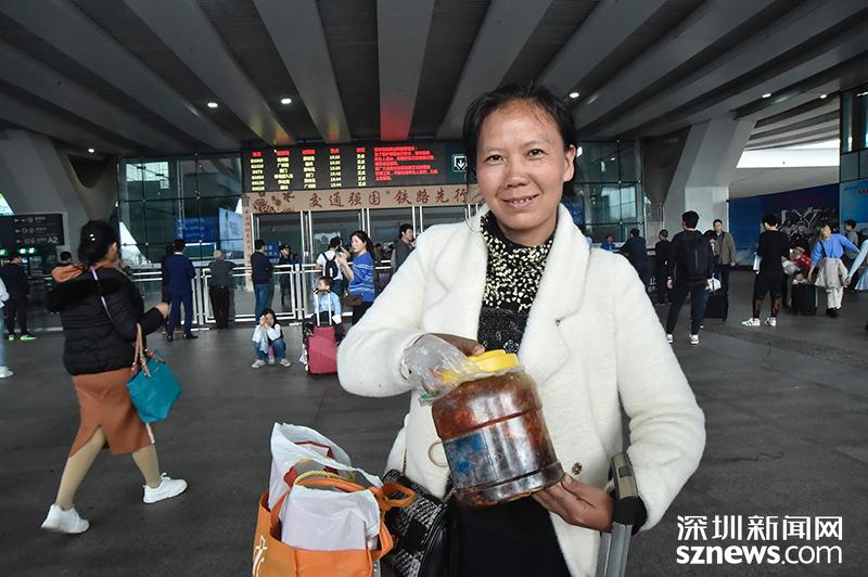 深圳新闻网2月13日讯(记者 陈婕 涂胜 杨浩翰)今天是年初九啦,一年一度的春运大迁徙已经接近尾声,返程的返程,开工的开工,各位网友也可以收收心努力搬砖了,13日14时,记者来到深圳北站和深圳火车站,看到返程的市民行李箱内、背包里都装得满满当当。中国式父母也许不善言爱,但总会把爱放进食物里,在很多父母眼里,外面千好万好,都没有自制食材好,它们慰藉孩子的胃,也伴着孩子淡淡的乡愁,踏上新一年的征程,新的一年,也要好好加油呀!